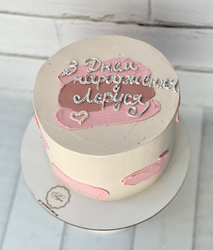 Бенто-тортик у бежевому кольорі — стильний та ніжний, із кремовим написом і художніми “змазками” у рожевих відтінках. Ідеальний для маленького святкування, приємного сюрпризу чи теплих побажань від серця. Мінімалістичний вигляд та максимальні емоції.
