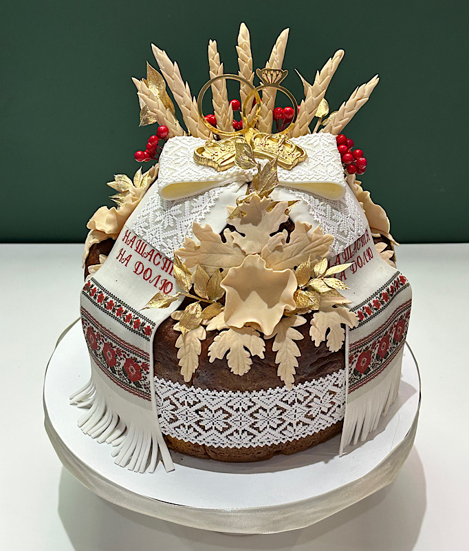 Традиційний весільний коровай — символ любові та єдності. Обгорнутий вишитими рушниками «на щастя та на долю», прикрашений золотим колоссям пшениці , ніжними квітами й листям із тіста. А червона калина додає сили та родинного оберегу. Такий коровай — це не просто хліб, а справжня молитва за щасливу долю.