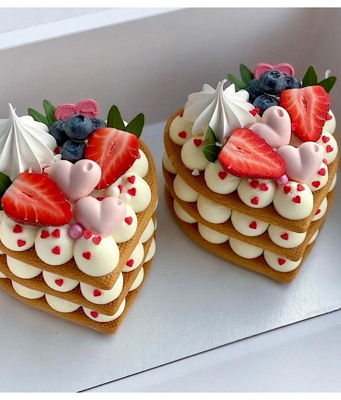 Надзвичайно смачні медові тістечка з кремом маскарпоне прикрашені свіжими ягодами. Чудовий спосіб сказати: «Я Тебе Кохаю!» Солодощі для закоханих.