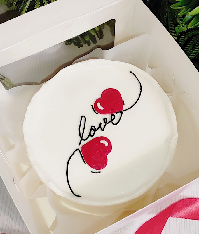 Бенто торт до дня закоханих з сердечками та надписом love. Зробіть солодкий подарунок тим, кого так сильно любите. Бенто торт Львів.