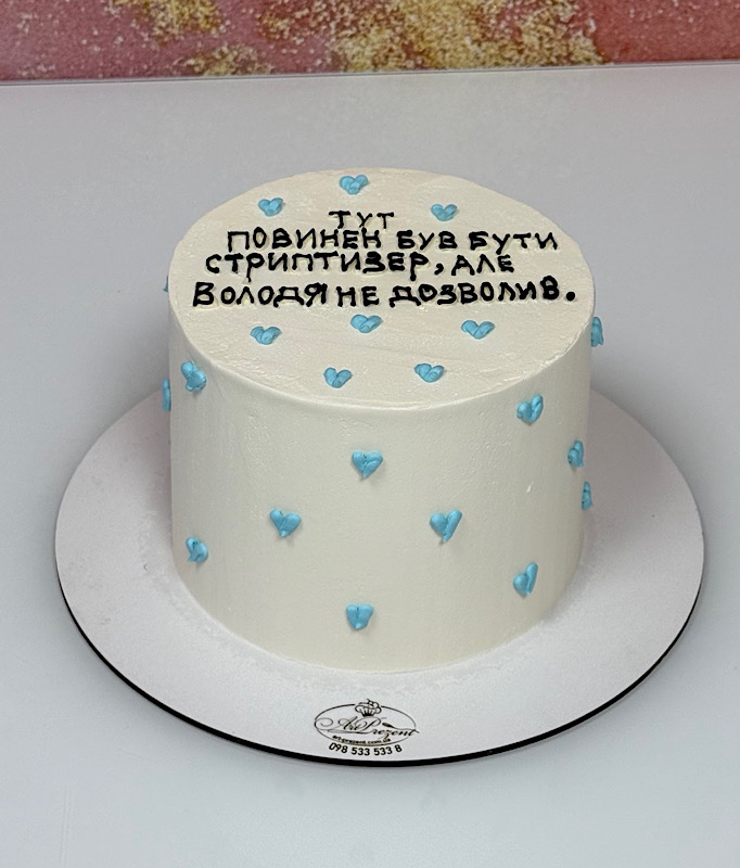 Міні-торт це торт вагою 1800-2100 грамів, розрахований до 10 осіб, наявні кілька начинок, які можна обрати в міні-торт. Ви можете змінювати надписи, колір, елементи дизайну. Відповідно може бути бути доплата за декор. Ціна включає упакування