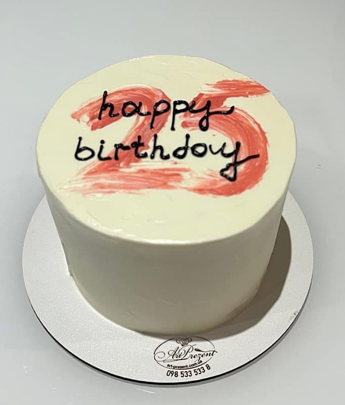 Міні торт з надписом і цифрою 25 на день народження. Маленький торт на замовлення.
