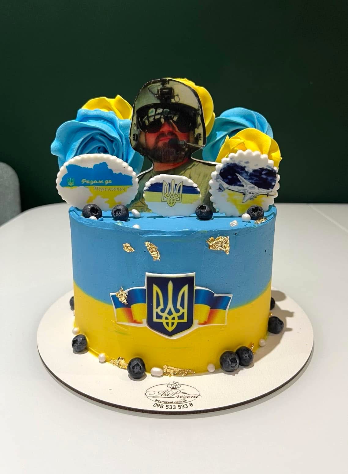 Торт патріотичний для пілота України. Торт. Для захисників з прапором та гербом України.
