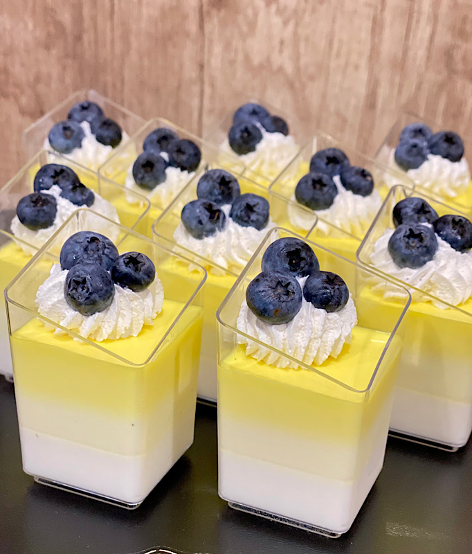 Ніжна панна-кота з освіжаючим цитрусовим смаком — легкий десерт у склянці, що поєднує ніжність вершків і яскраві нотки апельсина та лимона. Зверху — повітряний кремовий декор і стиглі ягоди лохини, які додають витонченості та свіжості кожній ложечці.