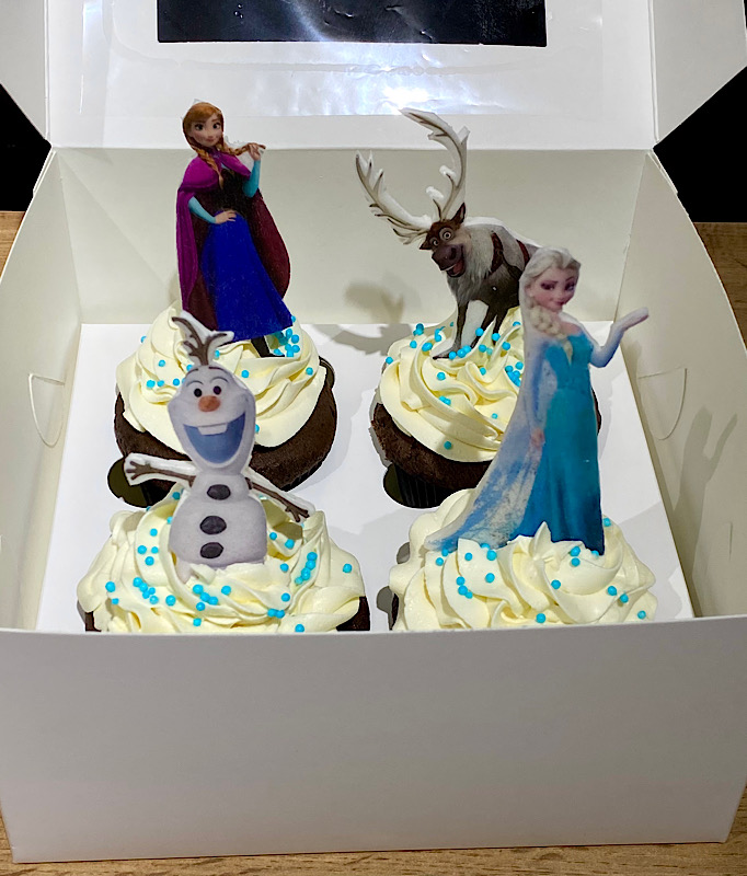 Подарунковий набір капкейків у тематиці улюбленого мультфільму «Крижане серце». Ніжні капкейки прикрашені зображеннями Ельзи, Анни, Олафа та оленя Свена — героїв, які дарують зимову магію та казковий настрій. Кожен капкейк — це маленьке диво зі смачною начинкою та святковим декором. Ідеальний солодкий подарунок для справжніх фанатів чарівної історії Frozen!