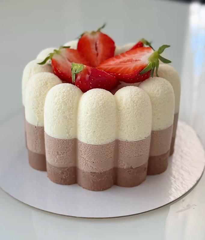 Мусовий бенто тортик три шоколади прикрашений свіжою полуницею. Найкращий подарунок для коханої людини. Бенто торти Львів.