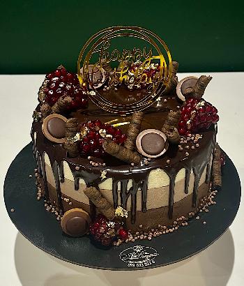 Класичний торт це торт вагою від 2,7 кг залежно від начинки, розрахований від 10 осіб, можливий вибір із багатьох начинок. Ви можете змінювати надписи, колір, елементи дизайну. Ціна не включає упакування.