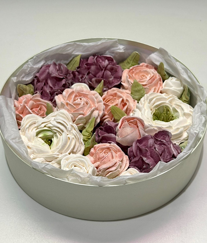 Вишукана композиція повітряних зефірних квітів у ніжній пастельній палітрі — персикові, фіолетові та оливкові відтінки, що створюють атмосферу легкості та свята. Кожна квітка виготовлена вручну з натурального ягідного зефіру — ароматного, ніжного та неймовірно смачного. Подарунок, який дивує з першого погляду і підкорює з першого шматочка. Солодко. Ніжно. Естетично